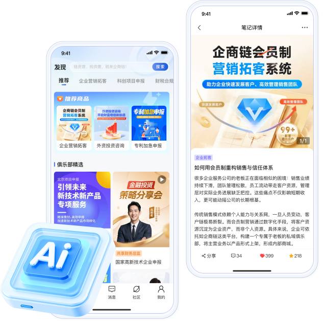 通过优质内容激发会员互动,系统将其浏览、咨询等行为实时转化为精准商机,并借助千人千面推荐持续激活需求,最终形成“内容-商机-成交”的闭环,帮助企业高效转化并沉淀客户资产。